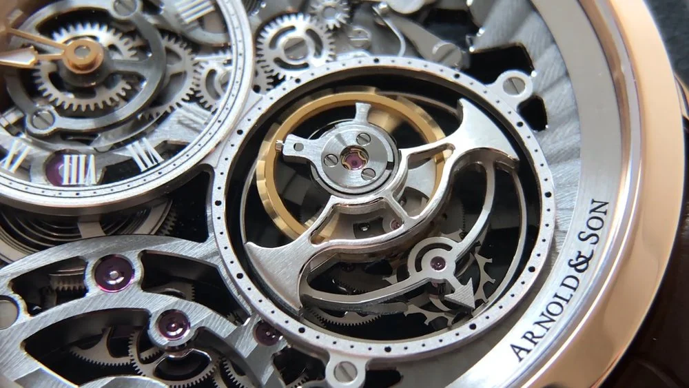 The Swiss watch brand Arnold & Son builds all its own movements and tools in-house and from scratch. Each timepiece is a painstaking work of art that takes hours to come to life.